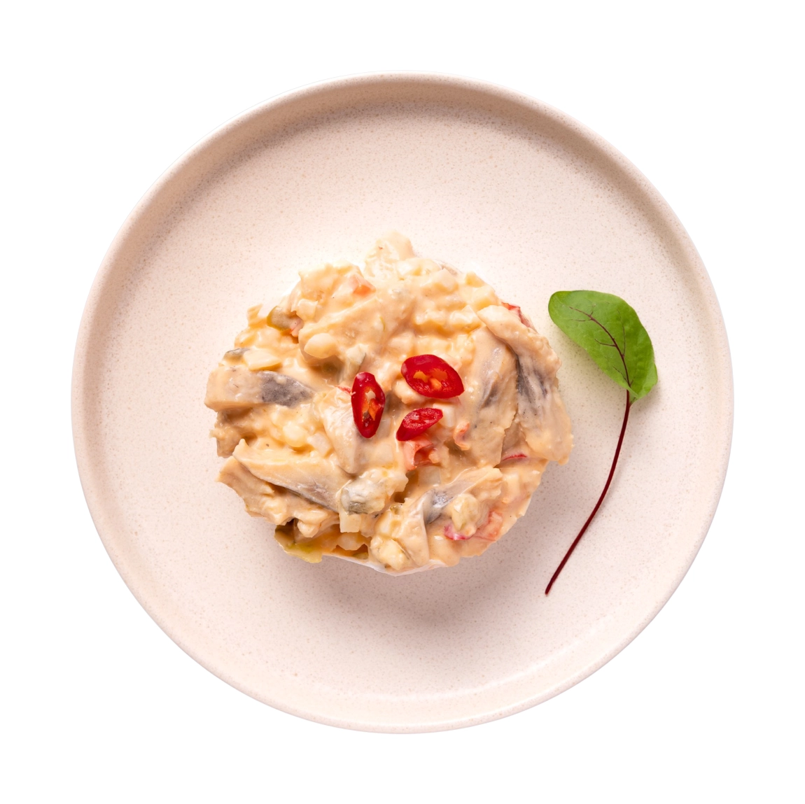Wyjątkowe połączenie delikatnych filetów śledziowych z warzywami inspirowanymi kuchnią bałkańską tworzy sałatkę o bogatym, wielowymiarowym smaku. Starannie przygotowana marynata podkreśla naturalny charakter ryby, a kolorowa kompozycja dodatków nadaje całości świeżości i wyrazistości.