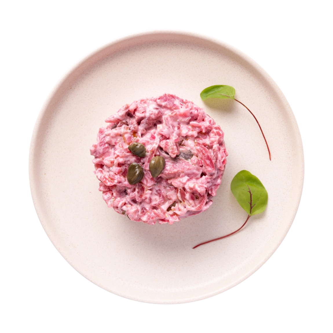 Wyrazista i kolorowa sałatka, w której delikatne filety śledziowe łączą się z intensywnym smakiem buraka, tworząc harmonijną i wyjątkowo apetyczną kompozycję. Marynowana forma produktu sprawia, że wszystkie składniki doskonale się przenikają, nadając całości głębi i charakteru.